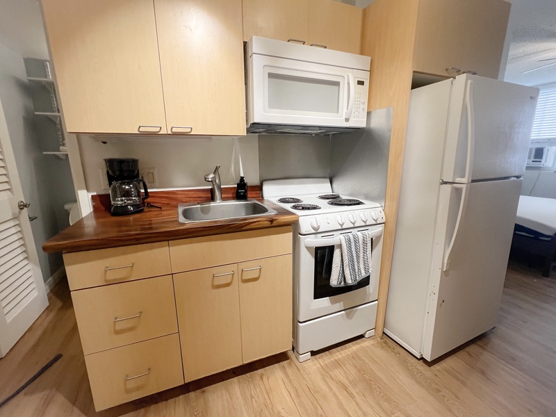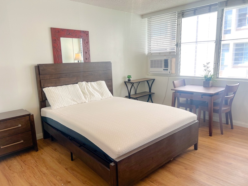 Step into your personal retreat just moments from the vibrant heart of Waikiki. Nestled steps from Kuhio and Kalakaua Avenue, this stylish haven features a full kitchen, airy open-concept layout, private bath, and a versatile desk/dining nook. From here, you're just a leisurely stroll to the International Marketplace, iconic Waikiki Beach, and a world of shopping, dining, and tropical activities.