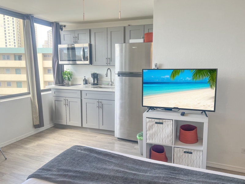 Relax in this beautifully renovated, modern studio at the Hawaiian Monarch building. Located at the beginning of Waikiki, this unit offers ac, smart tv, wifi and cable. It is a short walk from Fort DeRussy Beach Park, Hilton Hawaiian Village, Ala Wai Canal and more. The Hawaiian Monarch is a secured building that includes a spacious sun deck with grilling area, pool, and hot tub steps away from Waikiki’s shopping, restaurants, nightlife and activities. Take a short stroll to Ala Moana Beach...